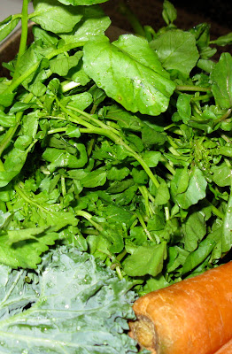 | cilantro, Napa cabbage, celery, curly kale and carrots |